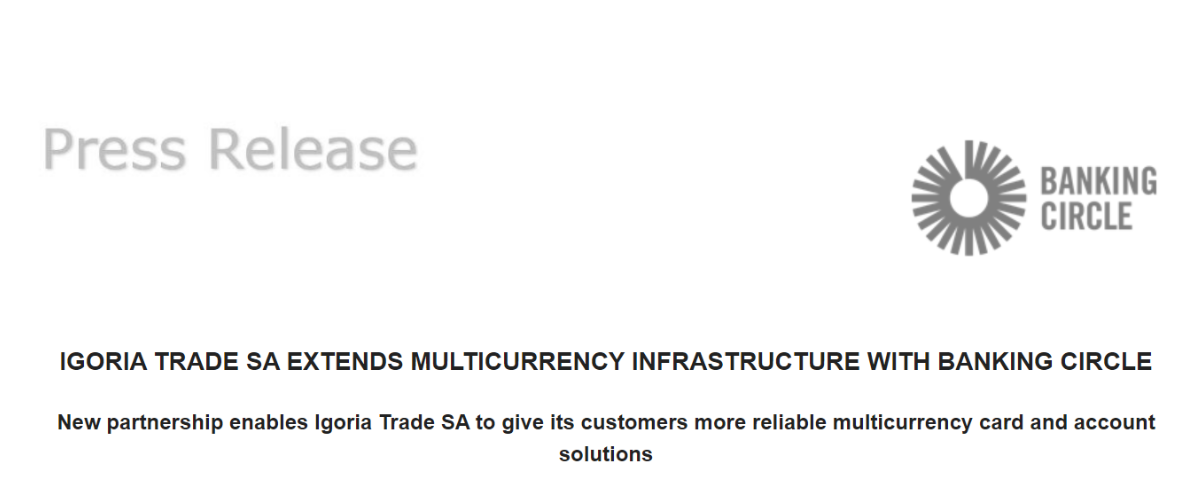 New partnership enables Igoria Trade SA to give its customers more reliable multicurrency card and account solutions