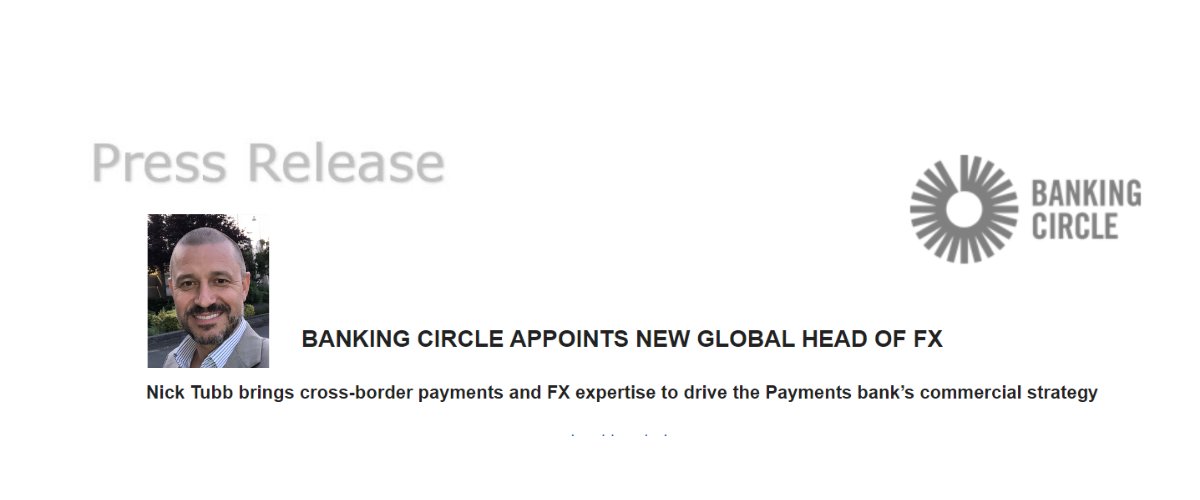 London, 5th April 2022 – Payments bank, Banking Circle, has appointed Nick Tubb as Global Head of FX to drive the Foreign Exchange (FX) commercial strategy for the Bank. Nick’s 25 years’ experience in commercial roles in high growth sectors and geographies in the payments space will be highly valuable to the Bank’s strategy and success.