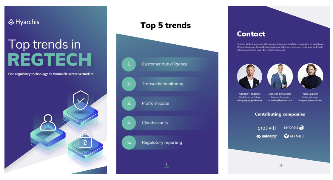 In the report 'Top trends in Regtech: How regulatory technology is changing the financial sector', Hyarchis talks about the five most important trends within this fast-growing regtech domain.