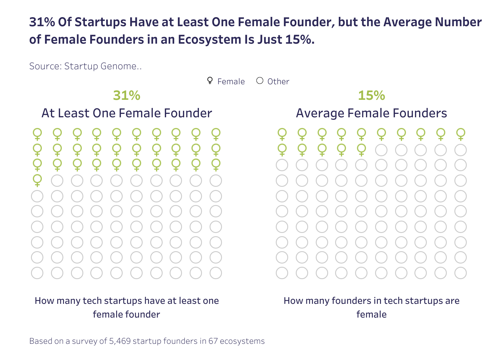 Only 15% of Tech Startup Founders Are Female (Startup Genome)