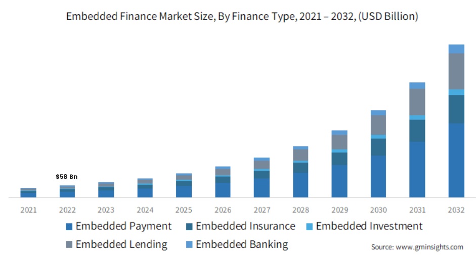 Embedded finance market to reach $730.5 billion by 2032 (Payments Cards and Mobile)