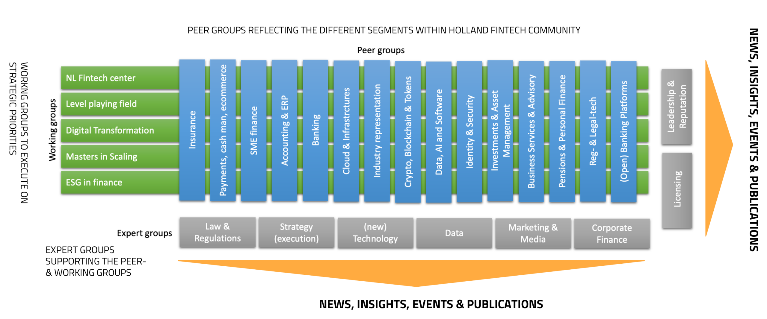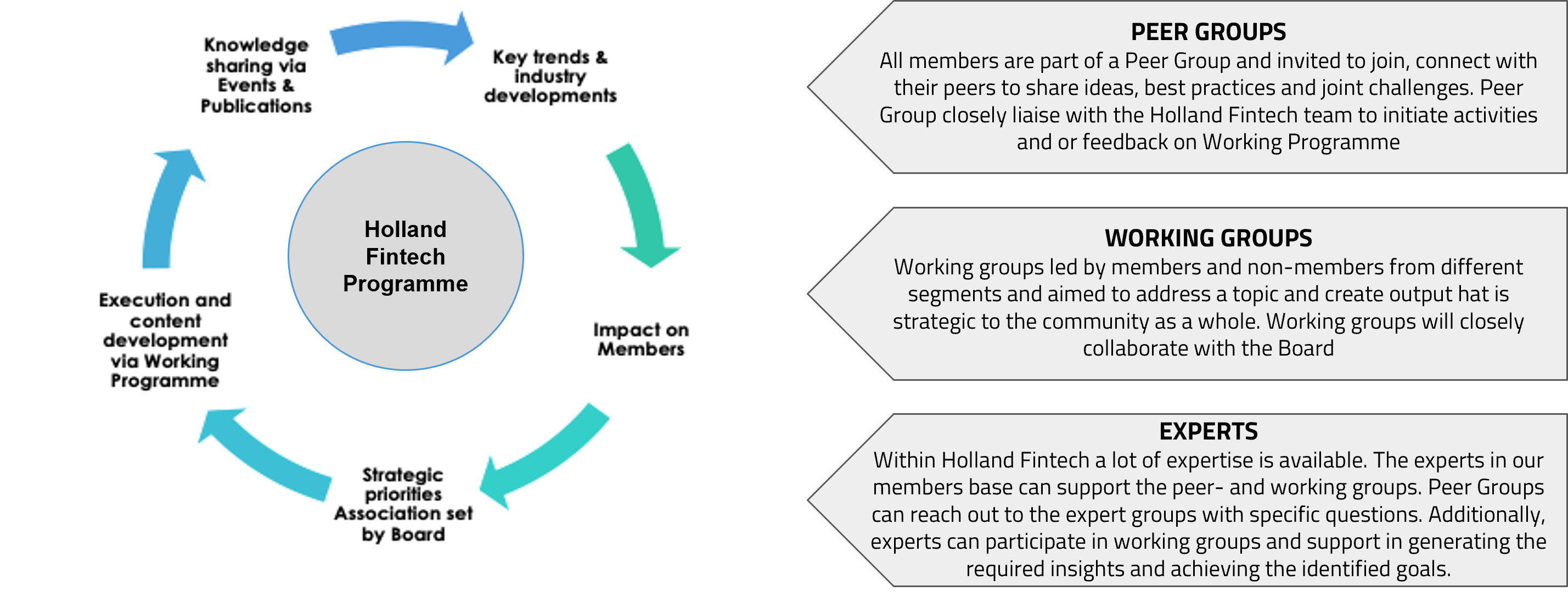 The working program is helping all members to meet their peers, together shape the agenda of Holland Fintech and engage with other stakeholders.